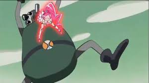 Cure Moonlight concentrates all her powers into her palm and strikes at the enemy; silver light will then shine, and the enemy is knocked away.