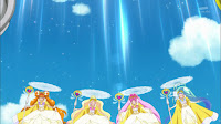 Is this attack reminds you of Espoir Shower from Fresh Pretty Cure? Anyway, this is the third group attack used by all four Cures using Premium Dress Up Key set and Music Princess Palace.